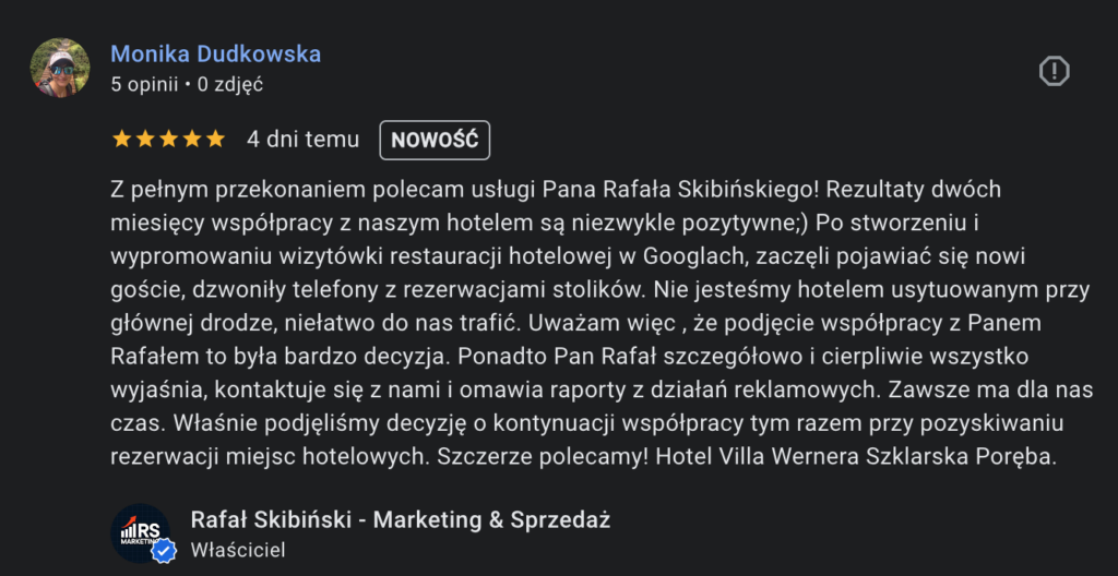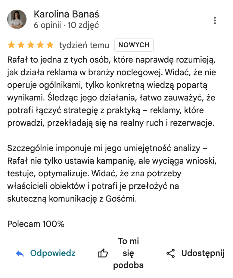 Zdejmujemy z nich cały ciężar technologiczny. My wdrażamy strony i reklamy, a oni mogą skupić się wyłącznie na dbaniu o gości, zamiast tracić czas na techniczną konfigurację.